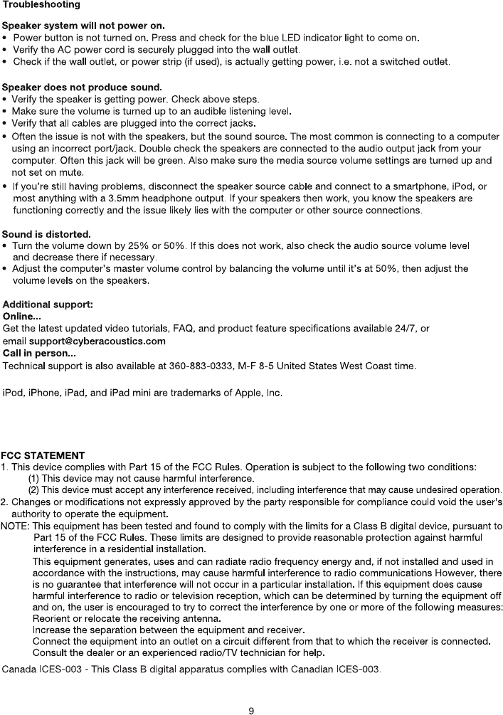 Cyber Acoustics (HK) Ltd. A Bluetooth 2.1 Speaker System CA 3858bt manu ol