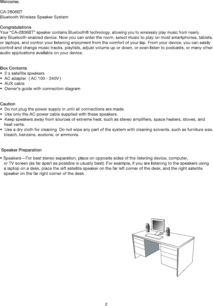 Cyber Acoustics CA2806 Bluetooth Speaker System User Manual CA 2806bt manu ol