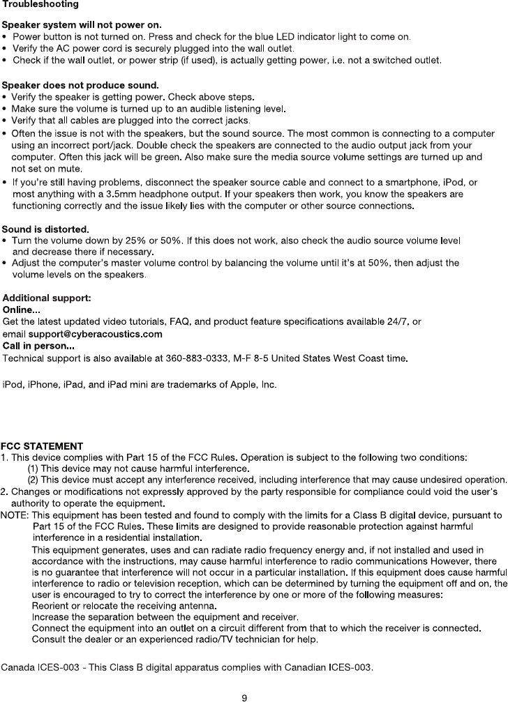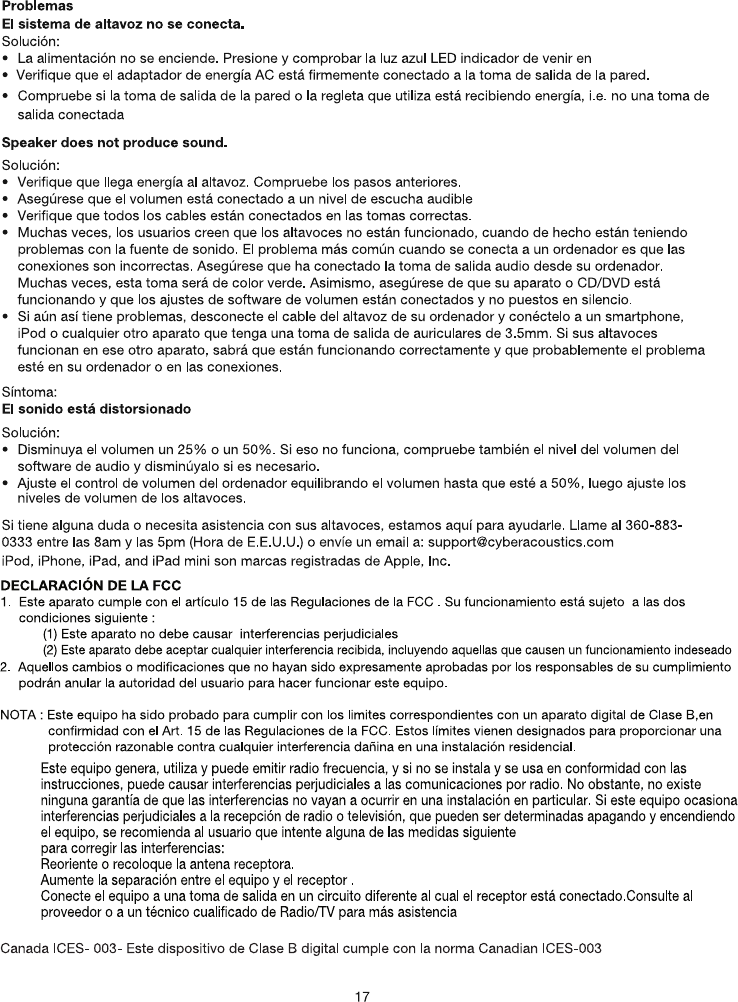 Cyber Acoustics (HK) Ltd. A Bluetooth 2.1 Speaker System CA 3712 manual ol