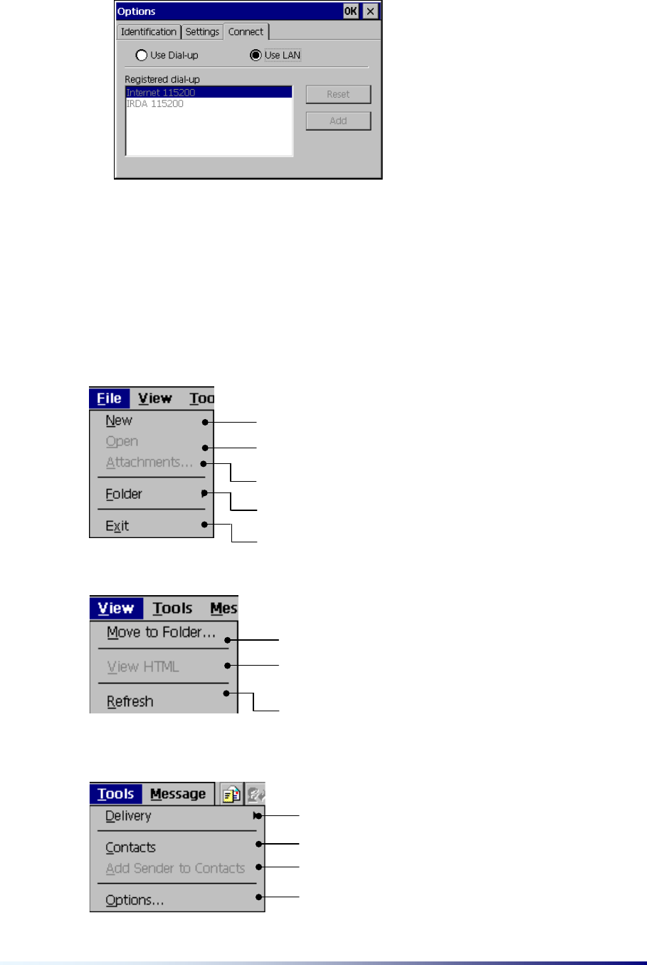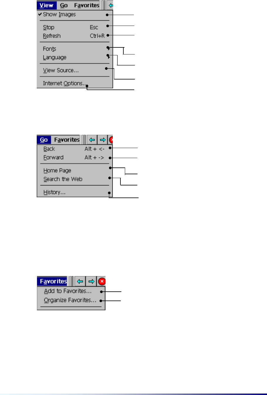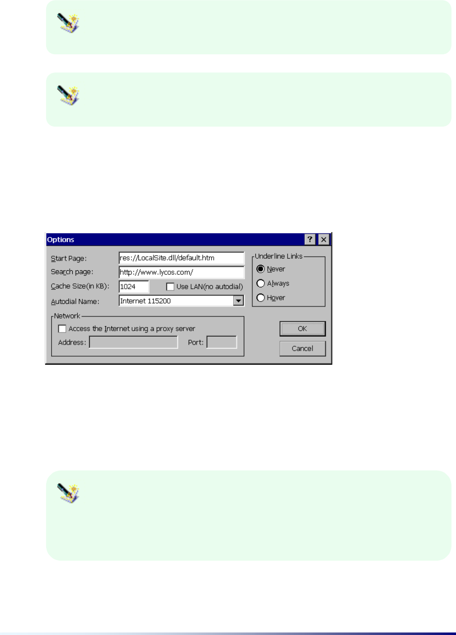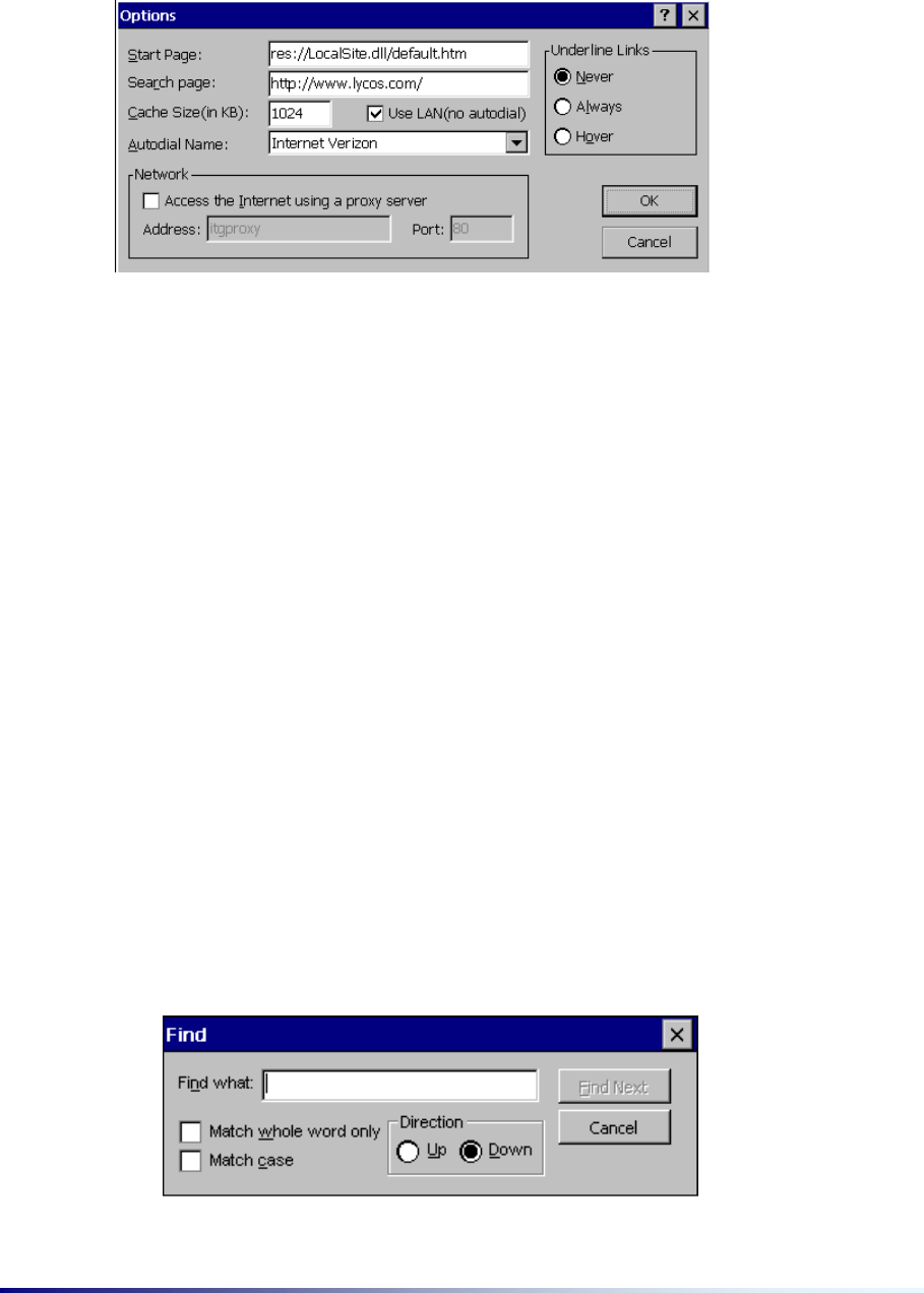 5. Tap Internet Options on the View menu of the PC-EPhone Web Browser Screen, and the