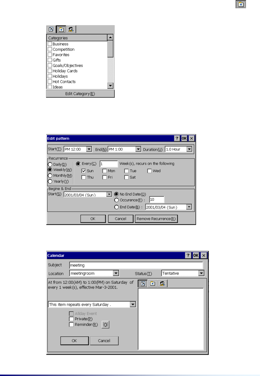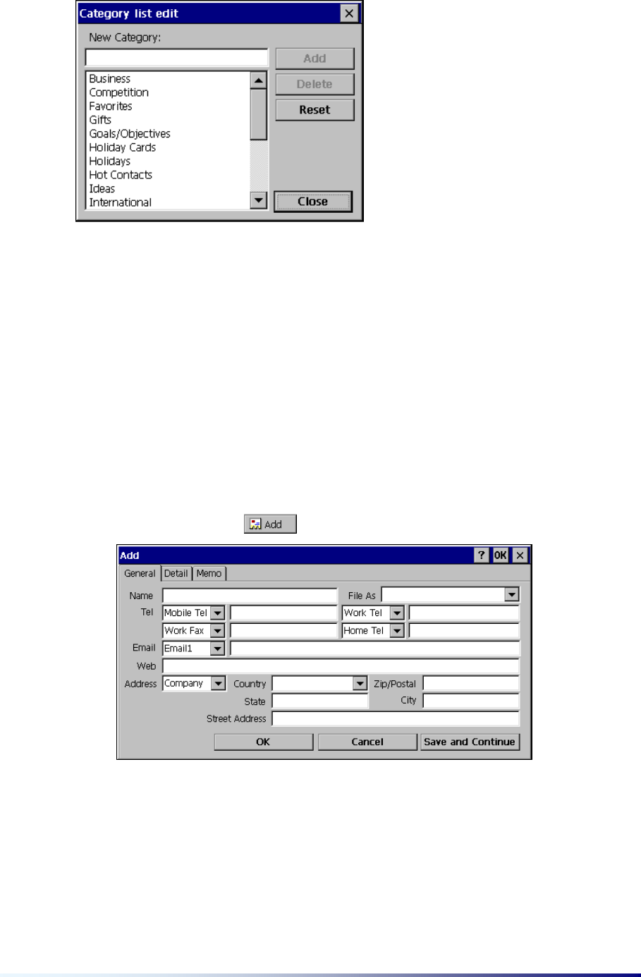 Tap Category list on the Edit menu, and the Category list edit dialog box shown below