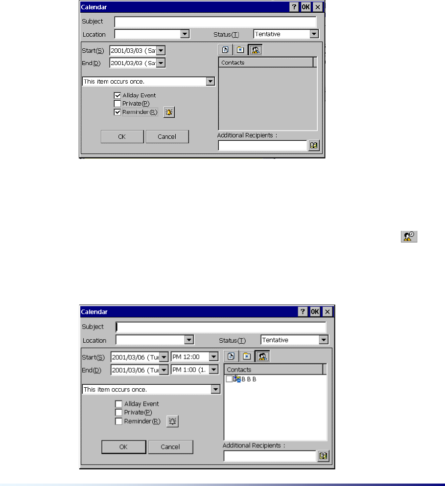Appointment dialog box : the Contacts icon is already activated and the names of