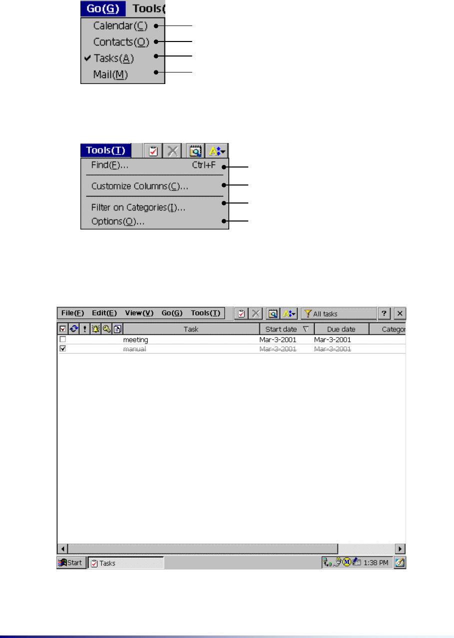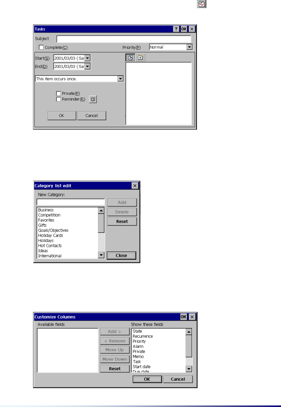 The Tasks program consists largely of a Task Screen, New Task dialog box, Category List