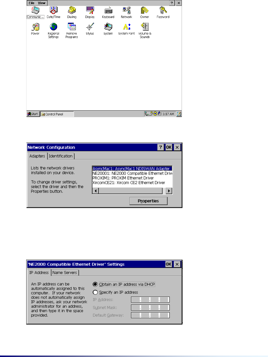 Ethernet Driver’, a default setting for the LAN card. Then tap Properties, and ‘NE2000