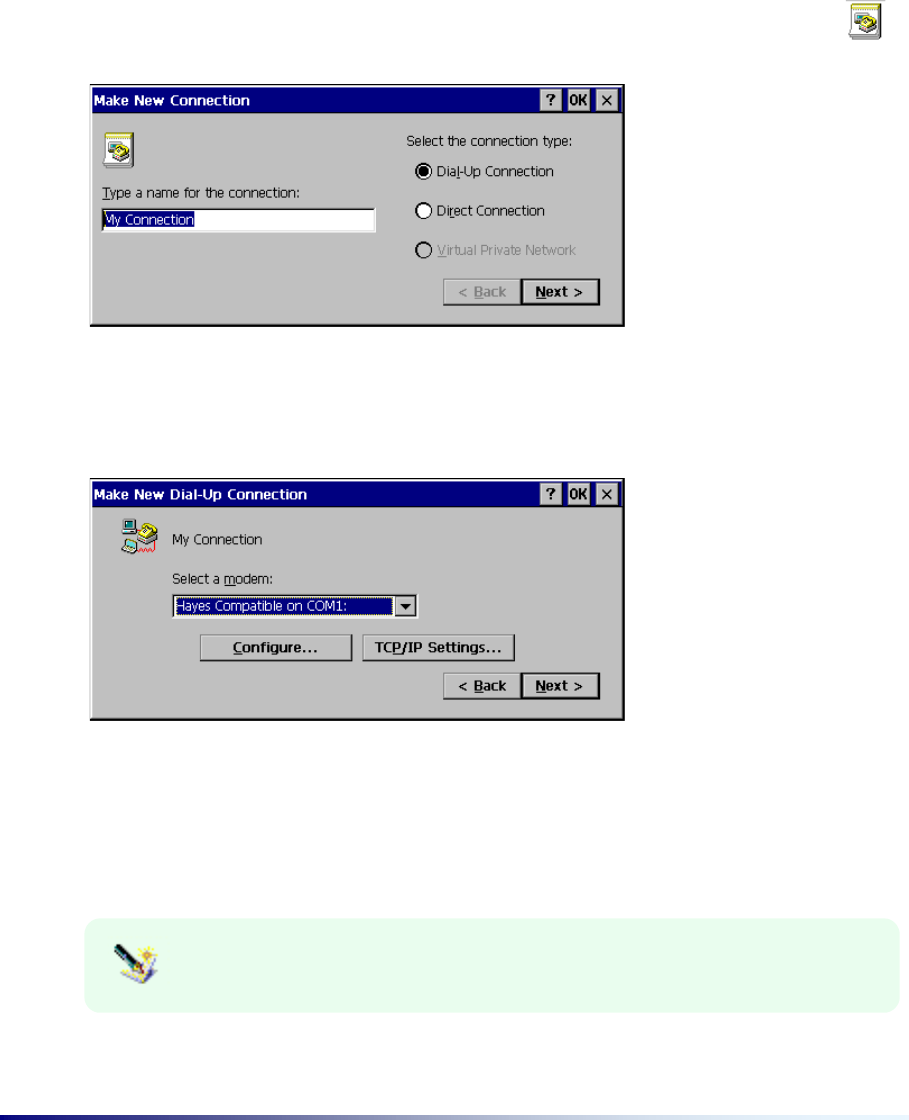 connection name and select Dial-Up Connection as the connection type. Then tap the Next