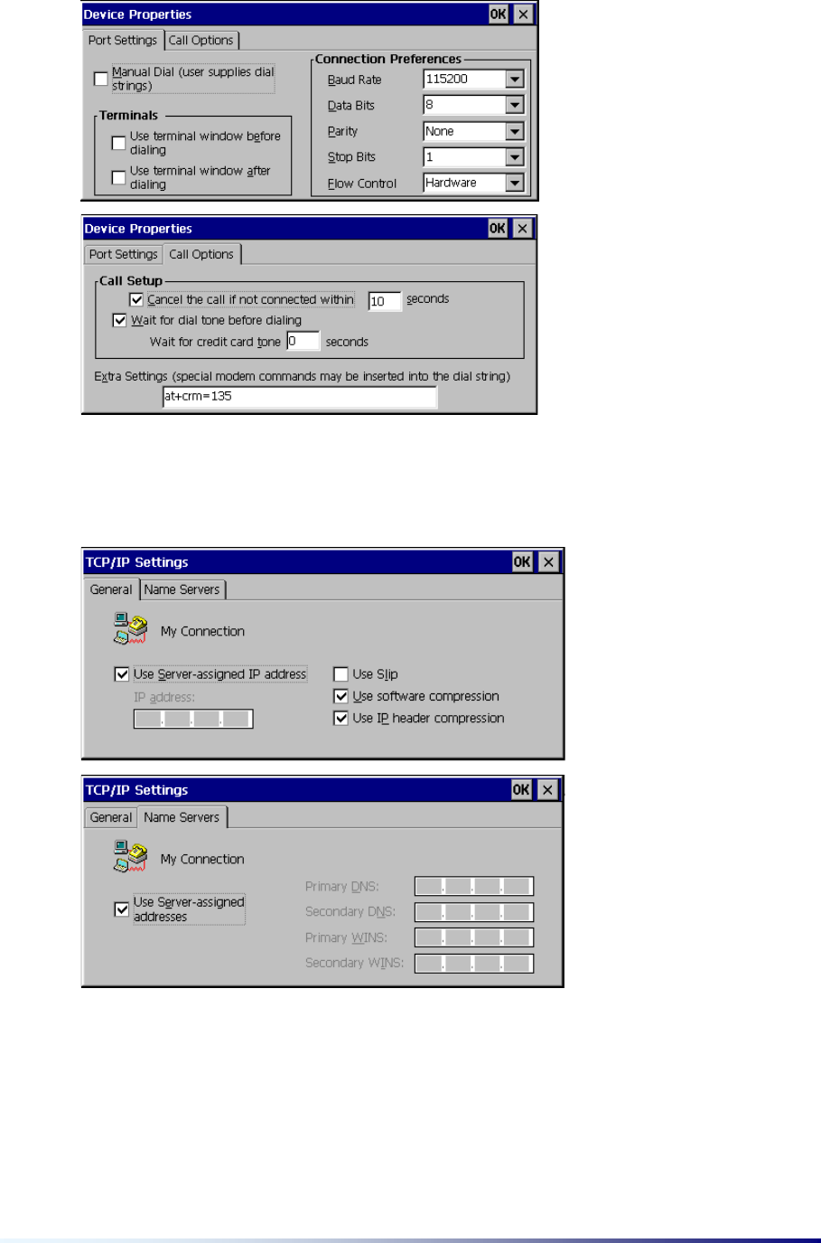 Settings and Call Options tabs in Device Properties to coincide with your Internet Service