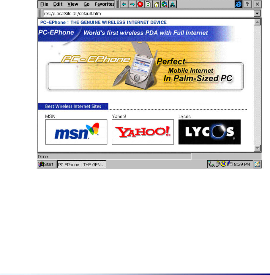 As your PC-EPhone has a built–in mobile phone module, you can access the Internet by direct Dial-
