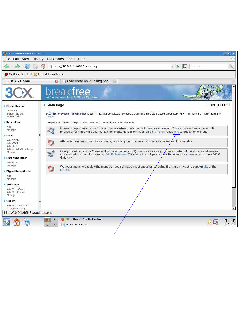 4. On the Main Page under the “Complete the following steps to start using 3cx Phone System