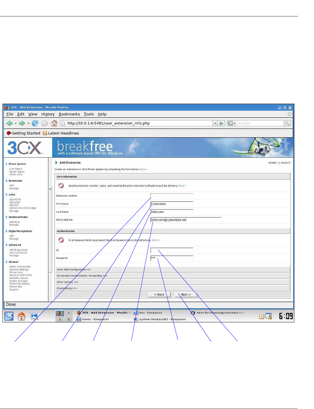 11. Use the information from the Extension Created page (Figure 4-5) to enter the following