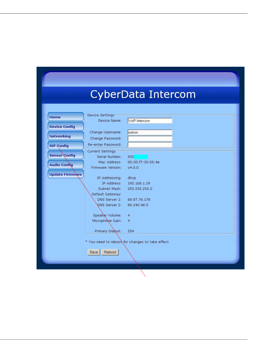 Log into the CyberData Configuration Home page (Figure 4-6) by pointing your browser to the