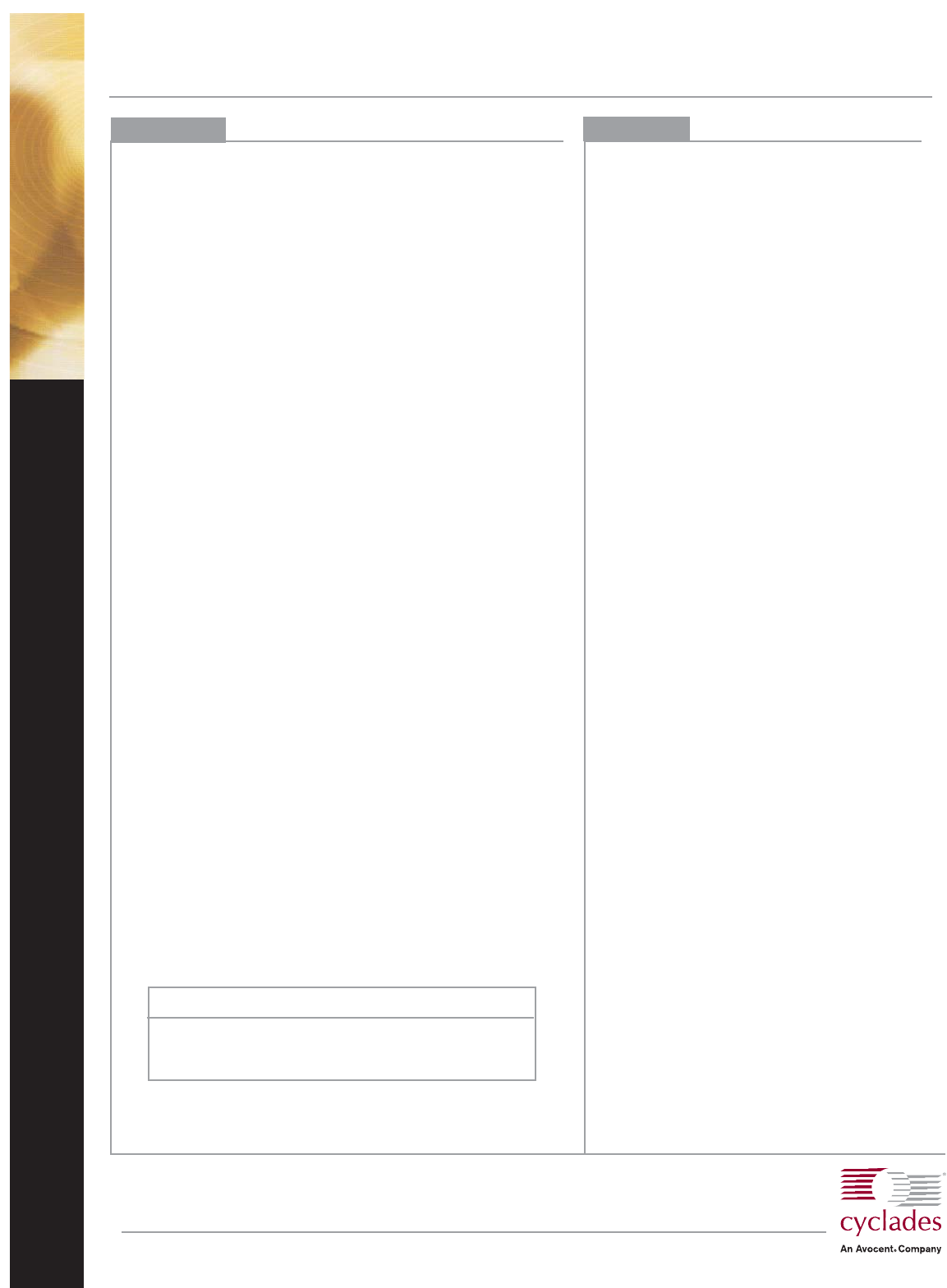 3541 Gateway Boulevard, Fremont, CA 94538 T: 510.771.6100 F: 510.771.6200 www.cyclades.com sales@cyclades.com