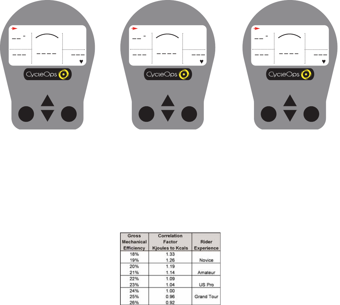 "Watts" - Indicazione in tempo reale dello sforzo fatto nel pedalare la cyclette. Questo valore esprime la potenza. **Se si preme [SELECT] mentre il