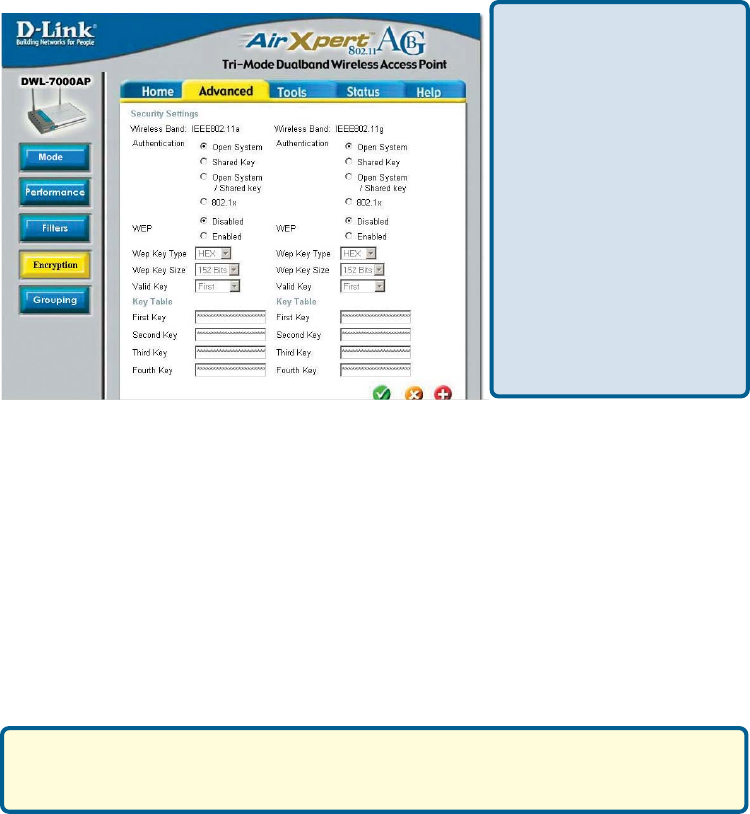 The DWL-7000AP incorporates the 802.1x standard for wireless user authentication and