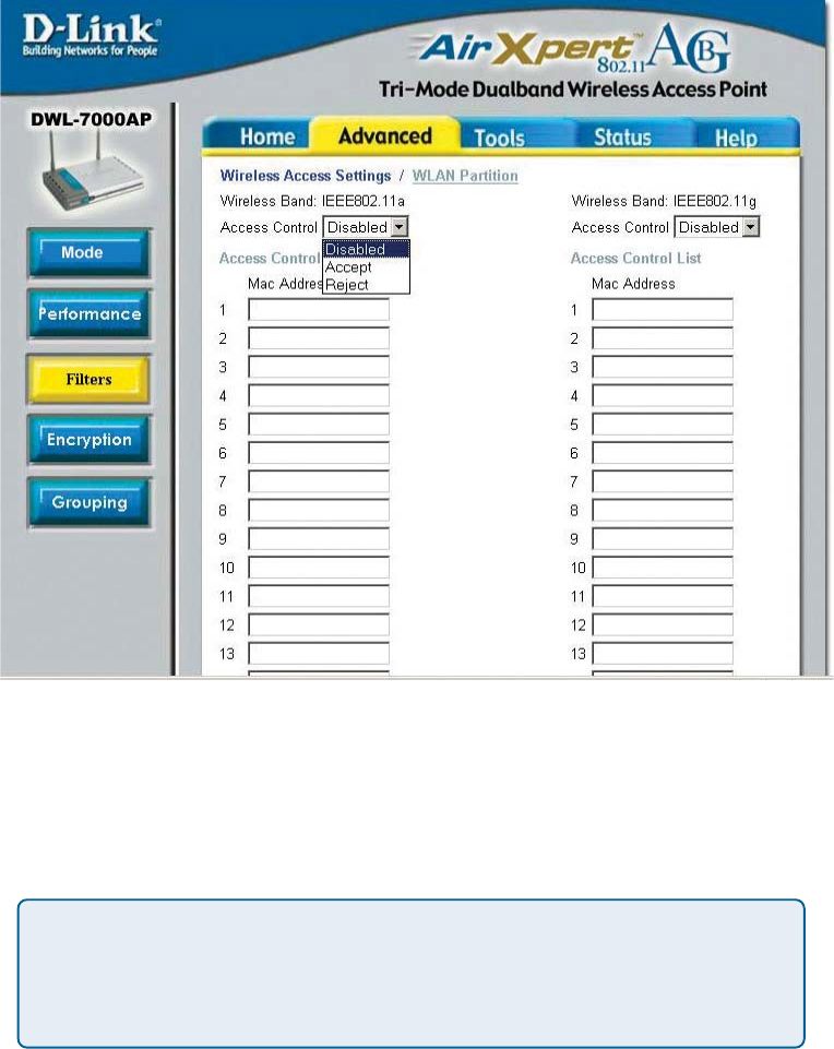 the usage of the dualband DWL-7000AP by segmenting the users on the wireless network