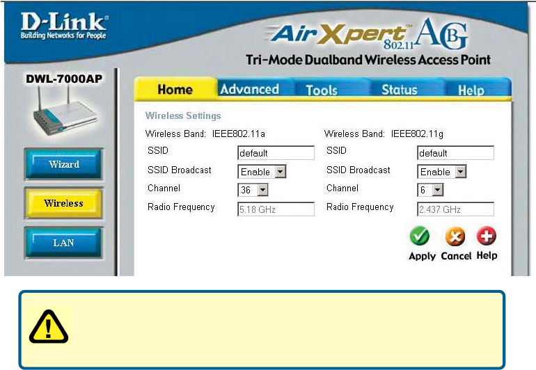 DWL-7000AP operates seamlessly and simultaneously in both the 2.4GHz and 5GHz