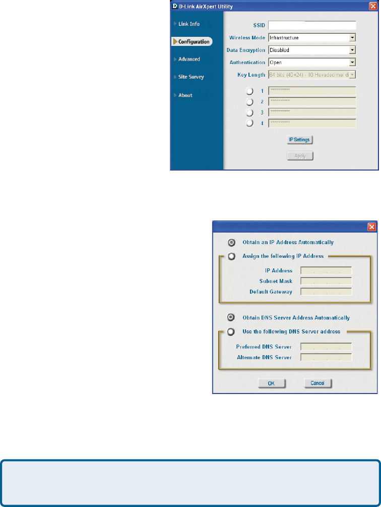 IP Settings - Click IP Settings and the screen above will appear. You can configure