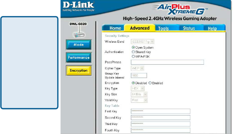 (WPA) and 128-bit WEP encryption, the Wireless Gaming Adapter also protects your