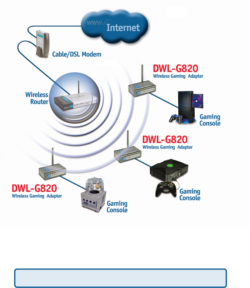The DWL-G820 works with any Ethernet-ready game console, making it ideal for both