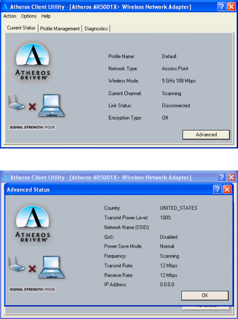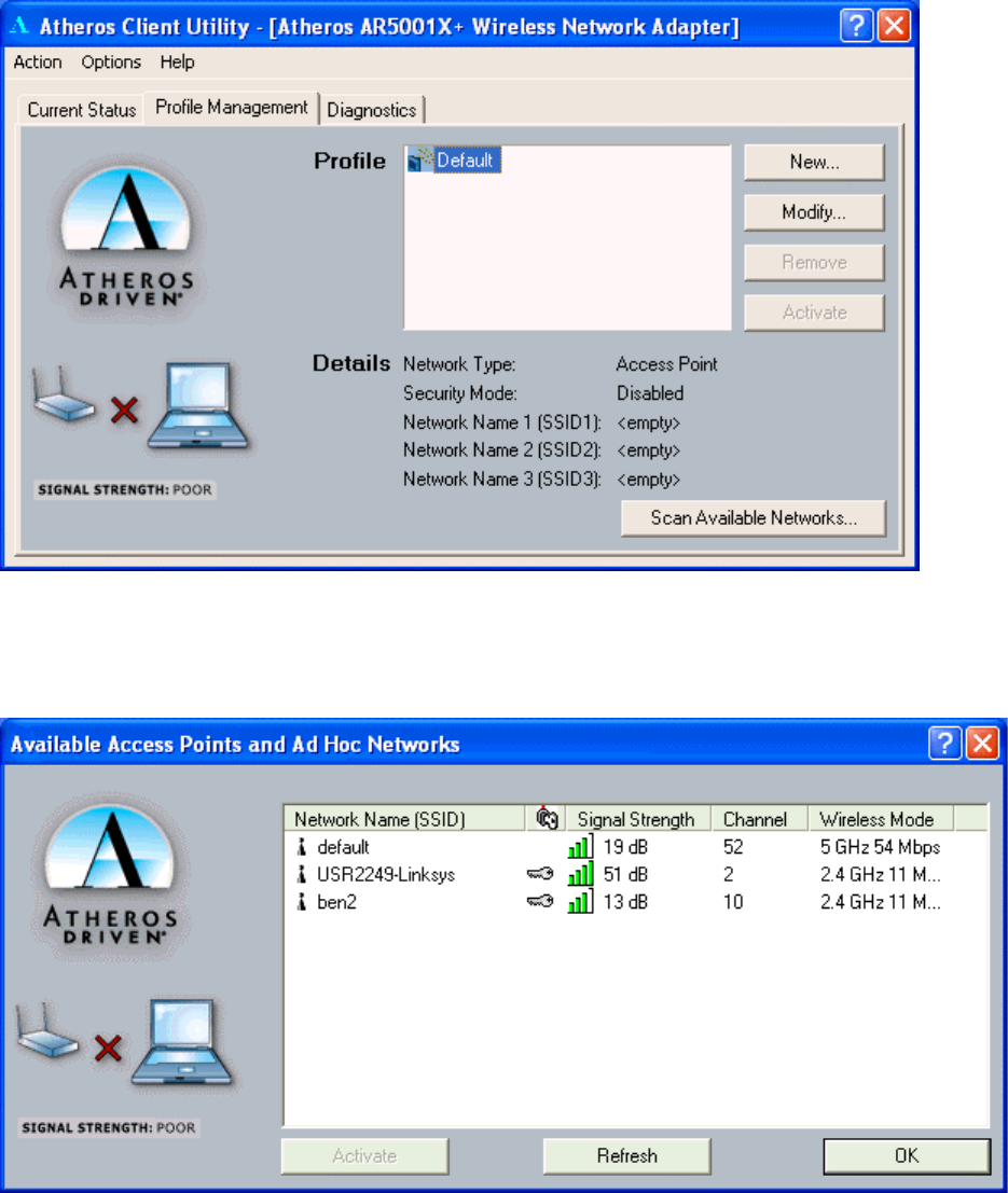 Display the current settings such as Profile Name, Network Type, Wireless Mode,