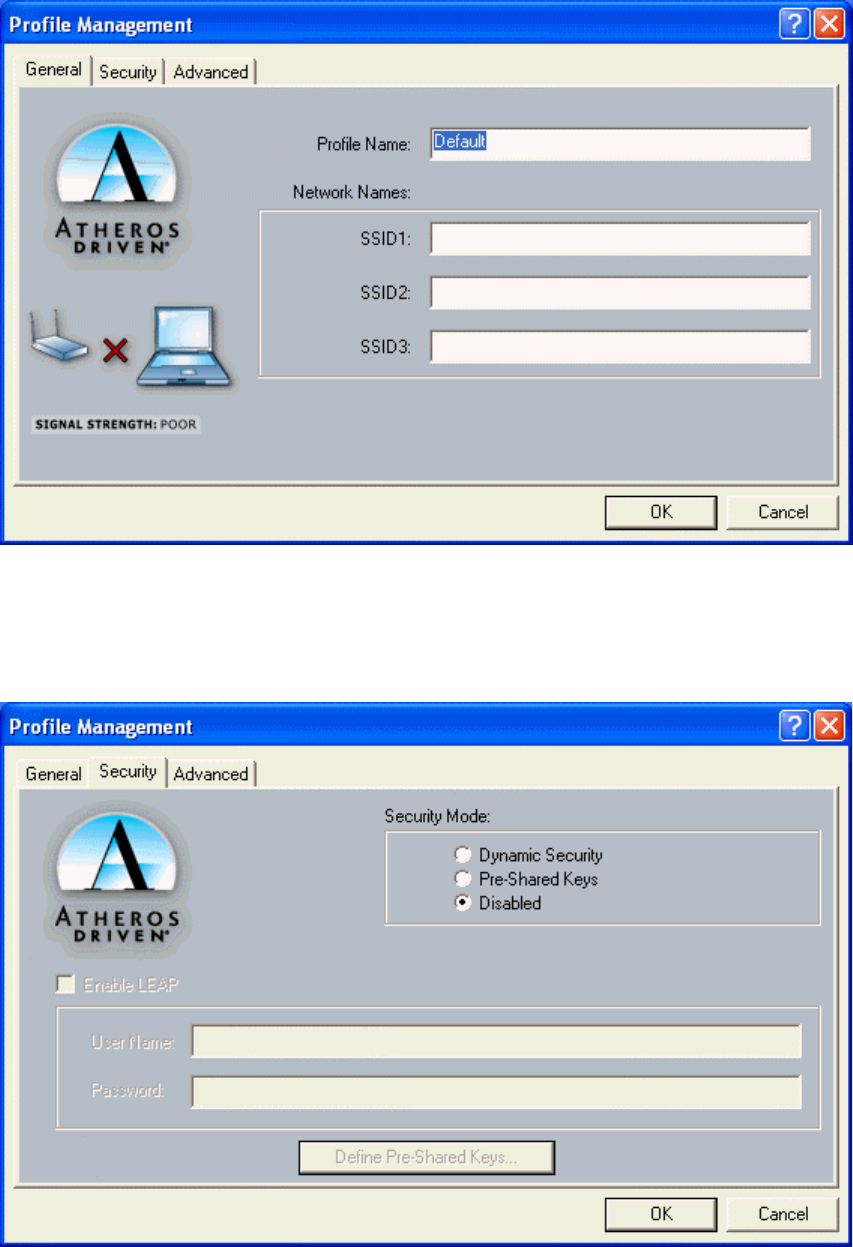 In “General” Tab, Enter “Profile Name”, and enter SSID for this profile.