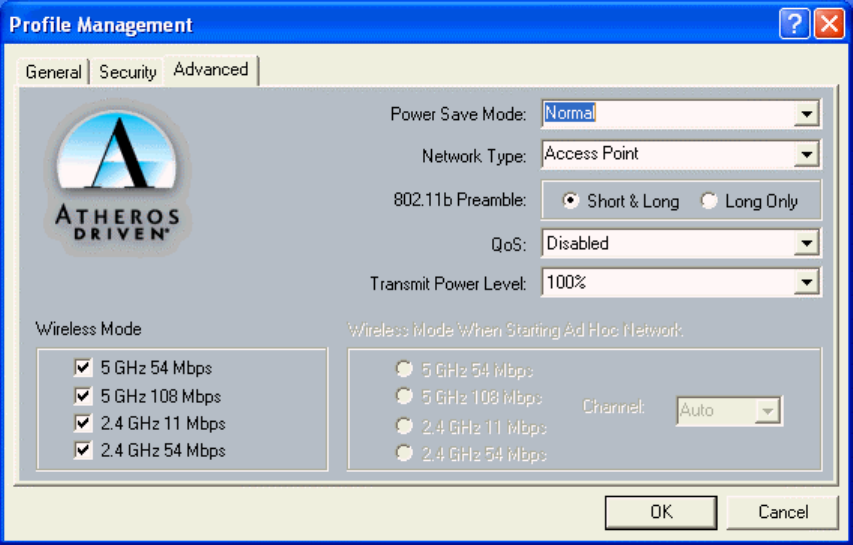 In the “Advanced” Tab, select the Power Save mode, Network Type and other