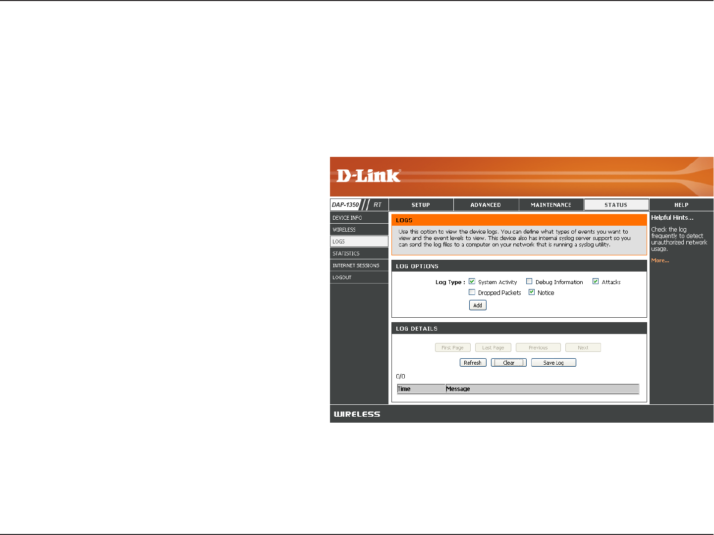 you to view the router logs. You can define what types of events you want to view and the level of the events to view.