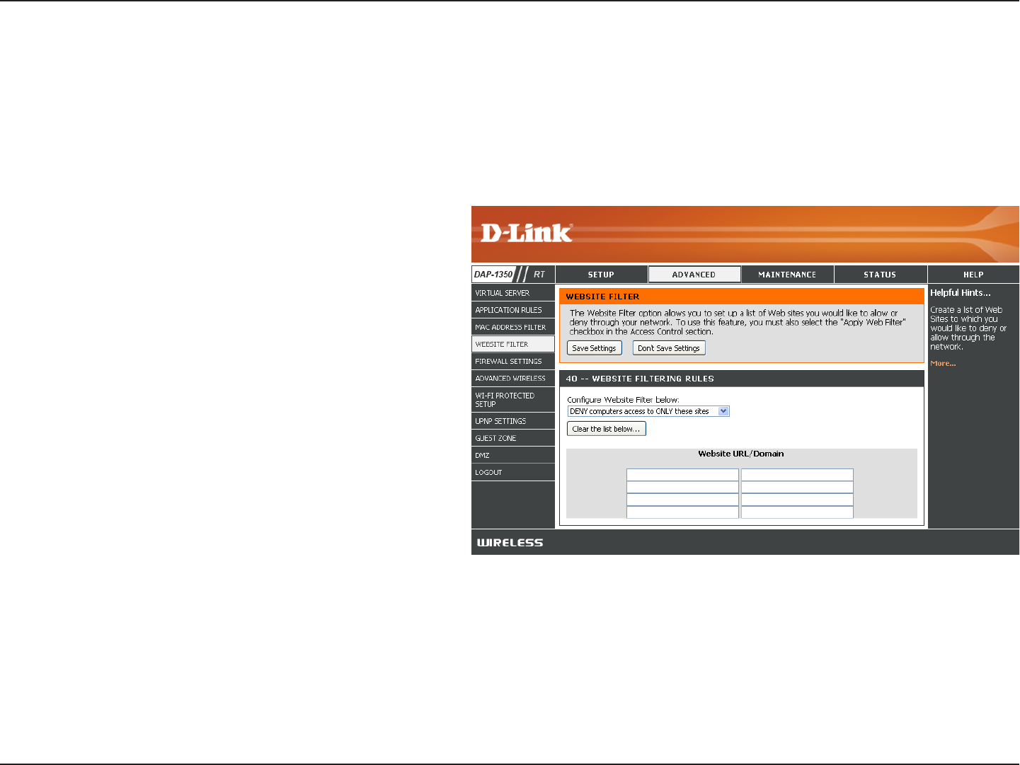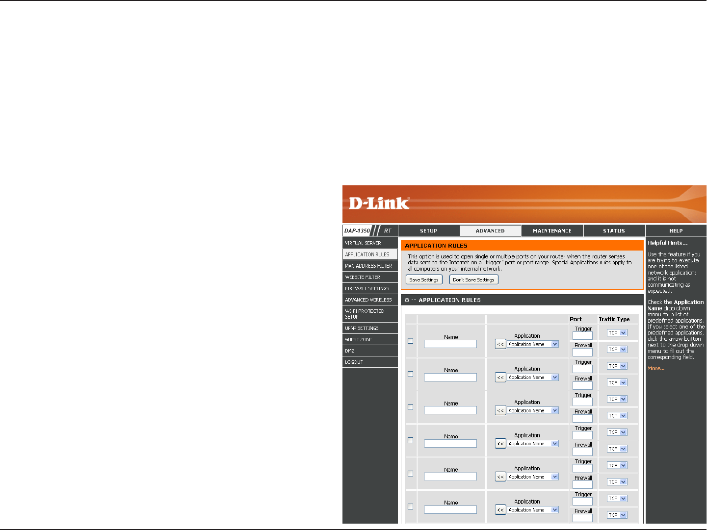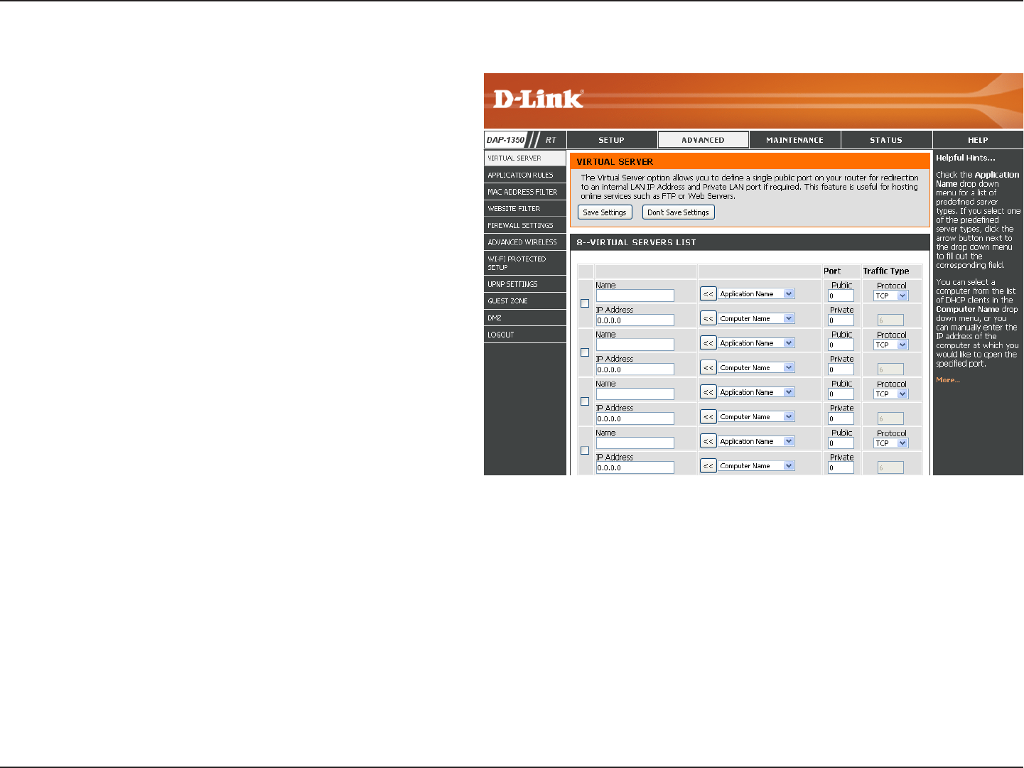 from the Internet by enabling Virtual Server. Depending on the requested service, the DAP-1350 redirects the external
