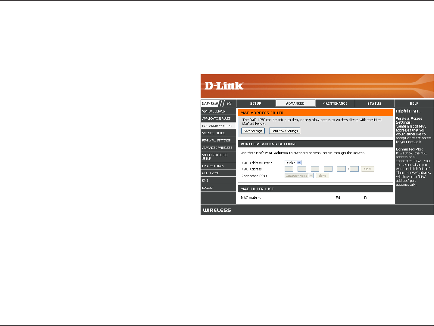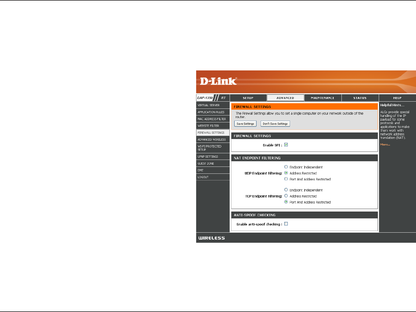 The DAP-1350 firewall feature filters out unrecognized packets to protect your LAN network so all computers networked