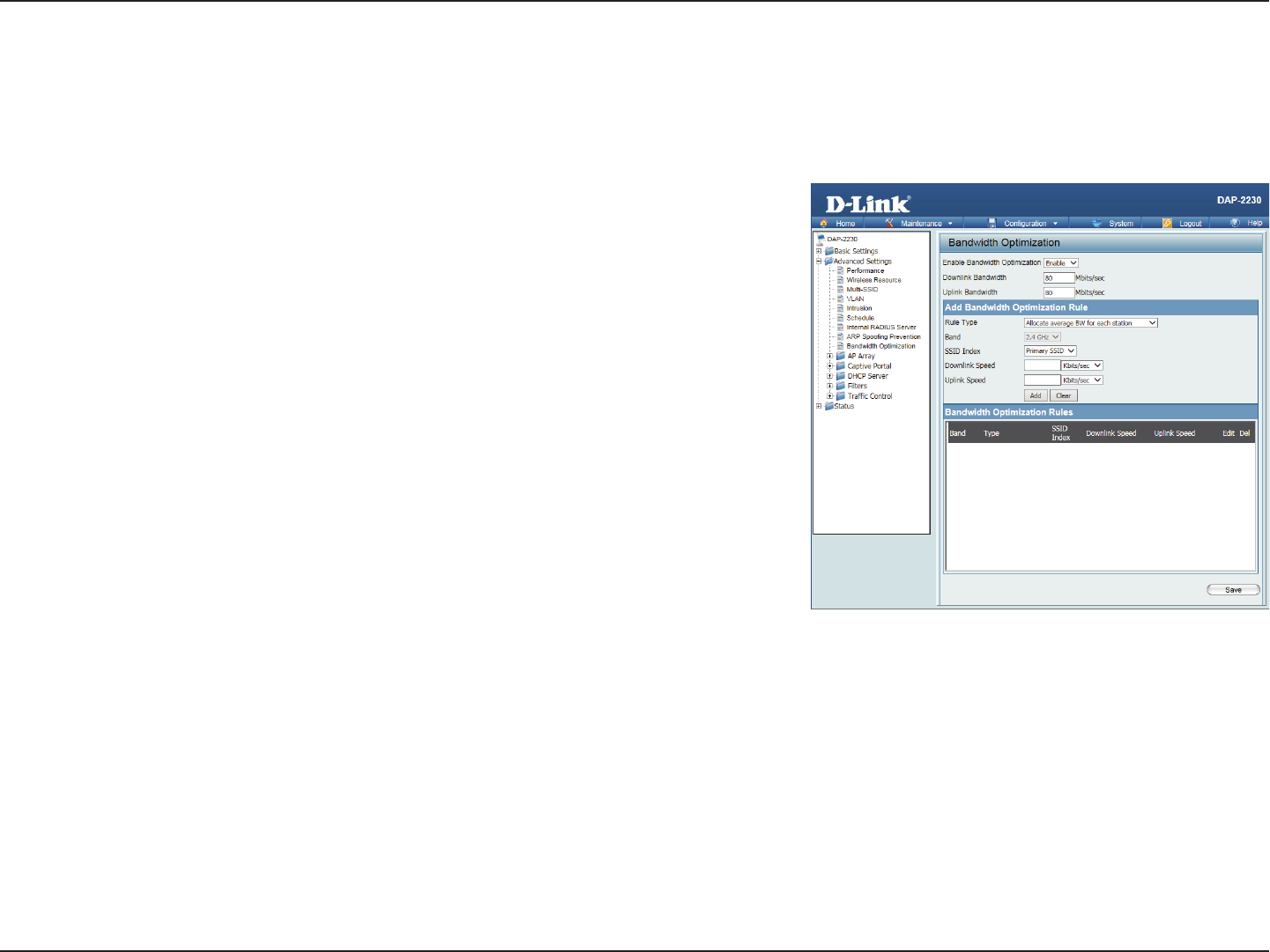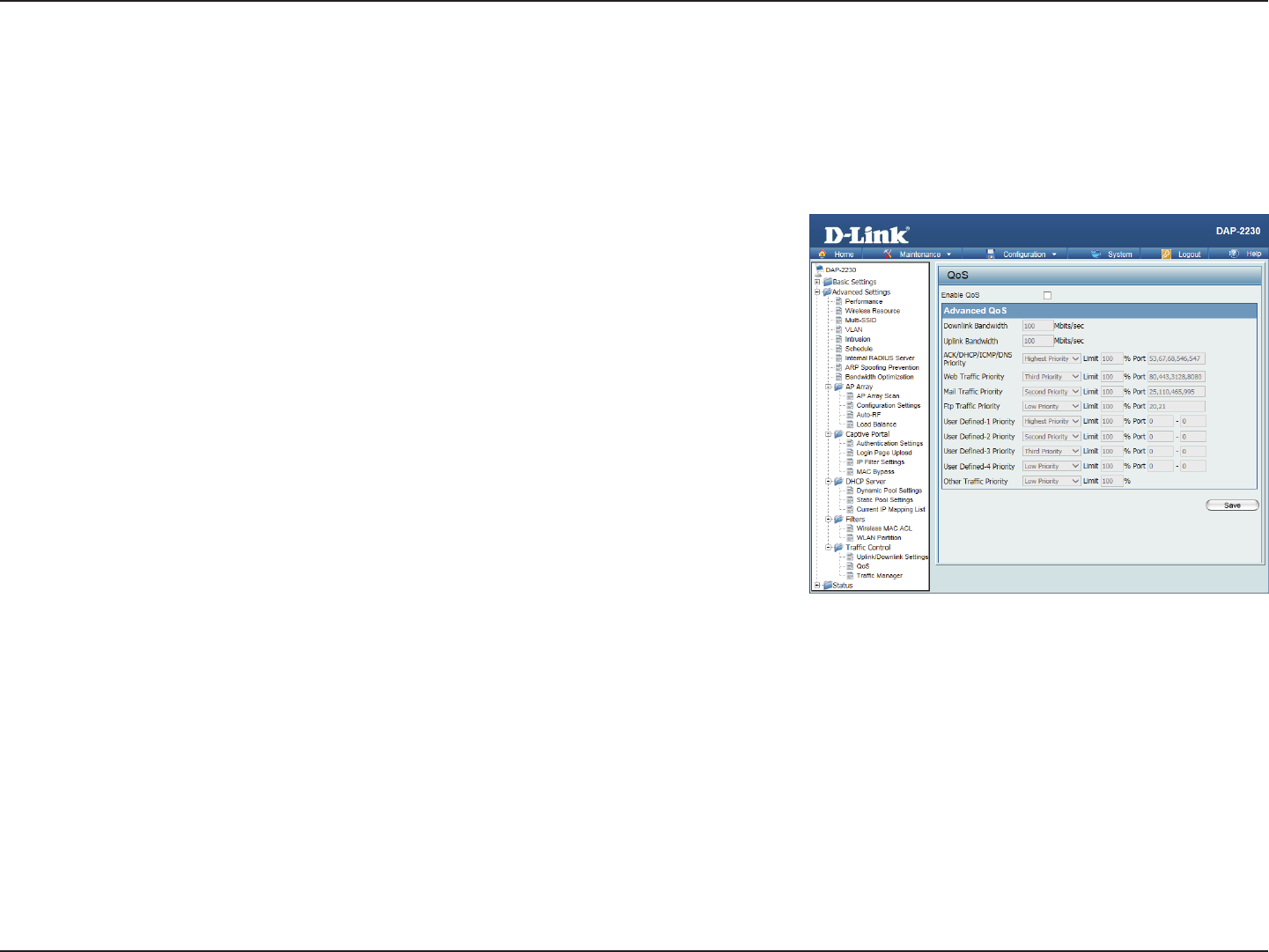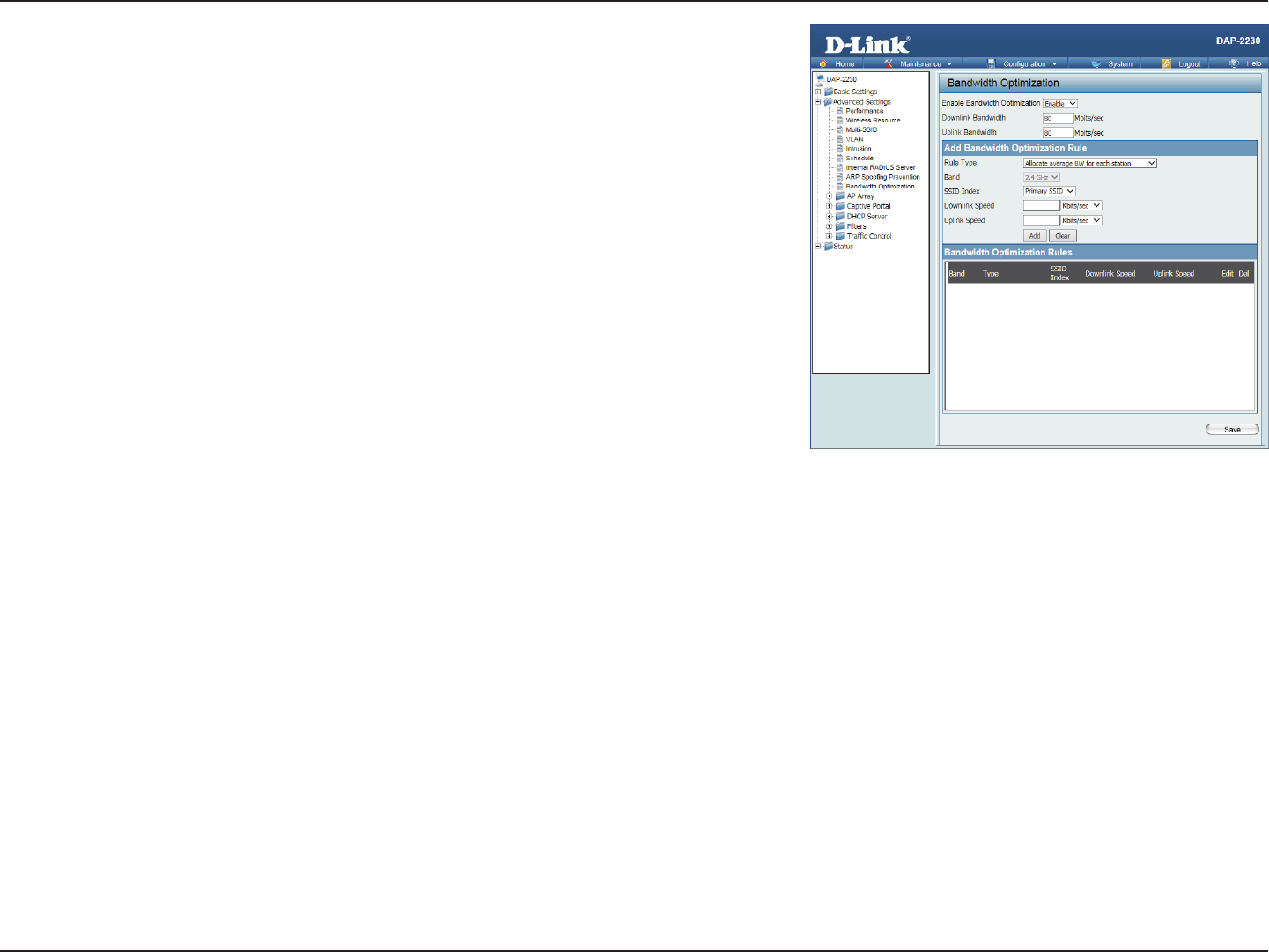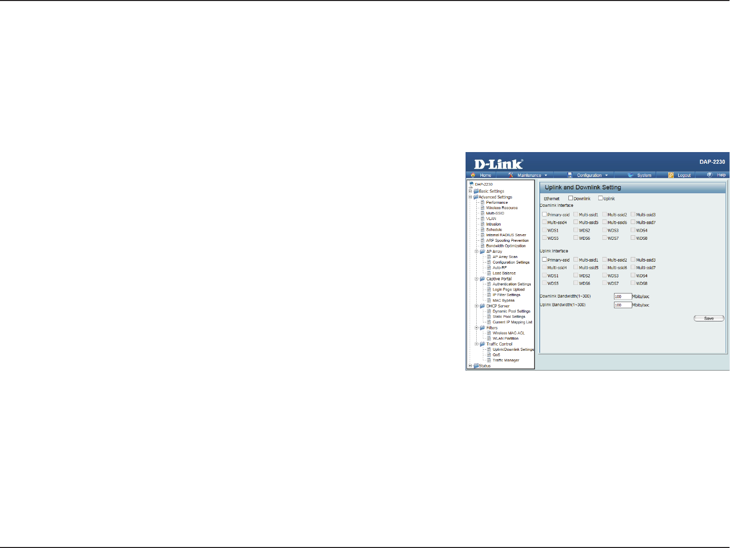 uplink and downlink settings have been selected, click the Save button to let your changes take eect.