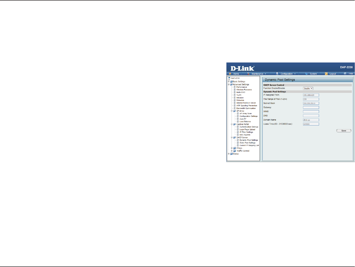 Subnet Mask: Dene the submask of the IP address specied in the IP Assigned From eld.