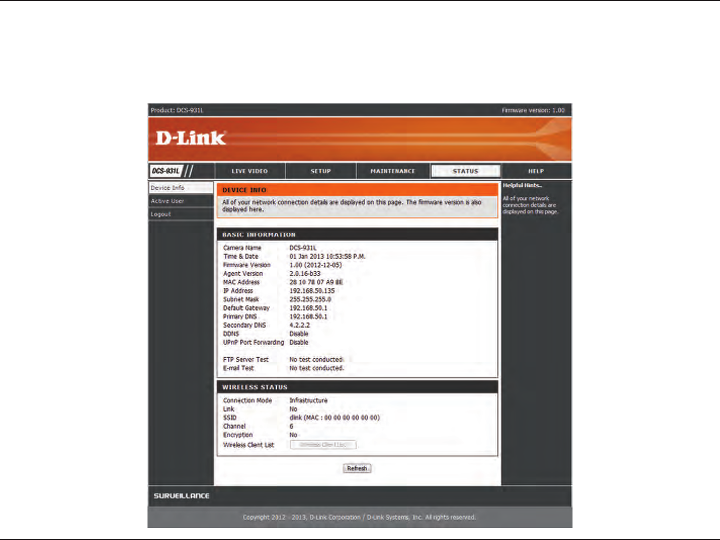 coverage. The DCS-931L also comes with remote monitoring and motion detection features for a complete and cost-eective