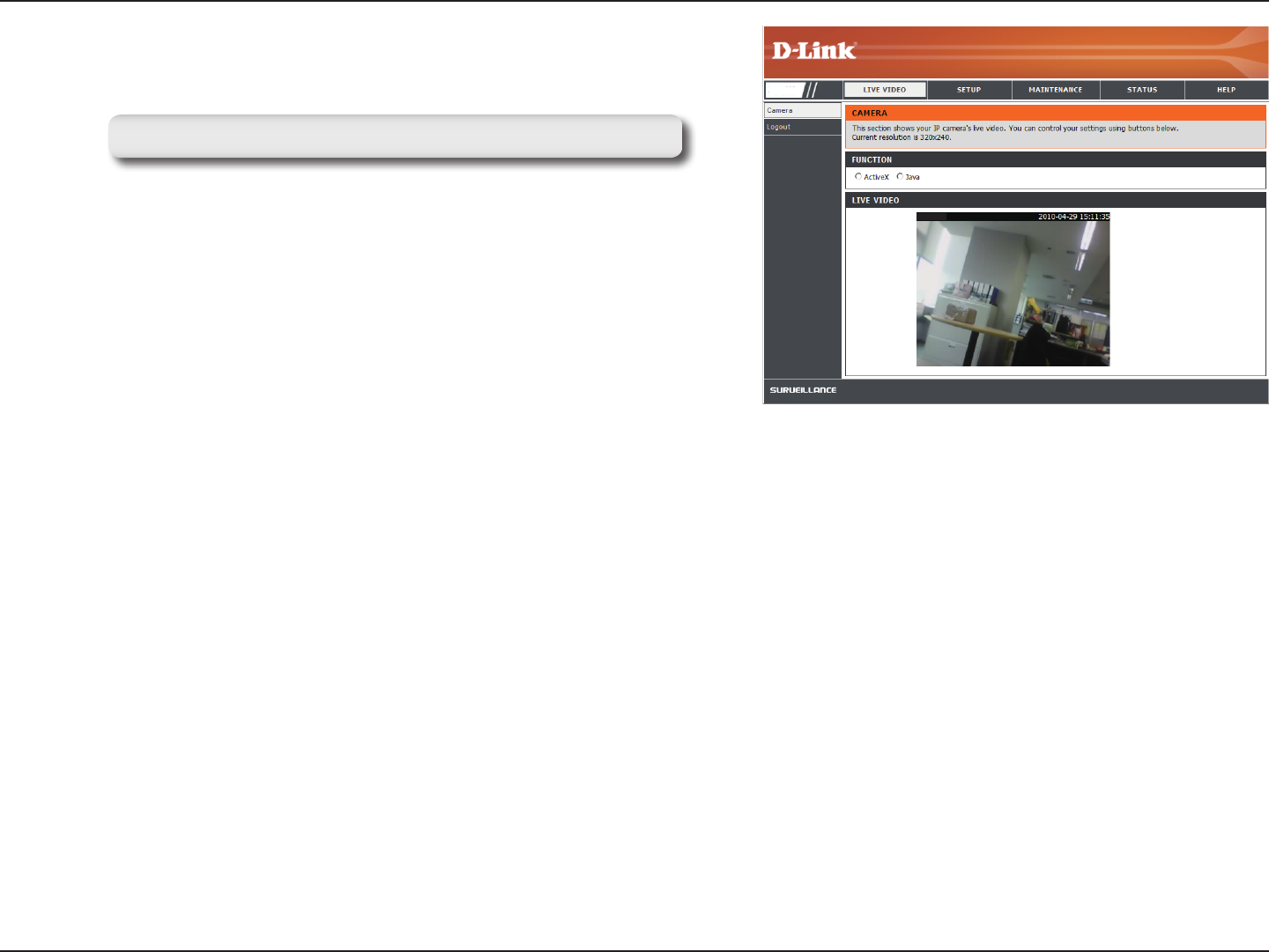 After completing the Camera Installation Wizard, you are ready to use your camera. The camera’s built-in Web conguration utility is
