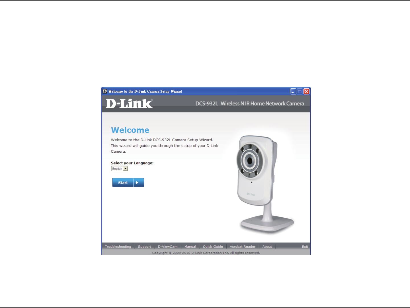 The CD-ROM will open the Camera Installation Wizard. Simply click Start to go through the Installation Wizard, which will guide you through the
