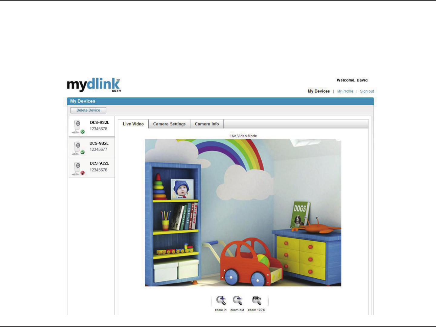 access your camera from the www.mydlink.com website. After signing in to your mydlink account, you will see a screen similar