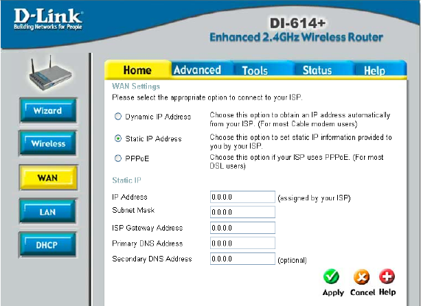 • Subnet Mask: LAN/Private Subnet Mask of the DI-614+