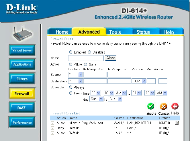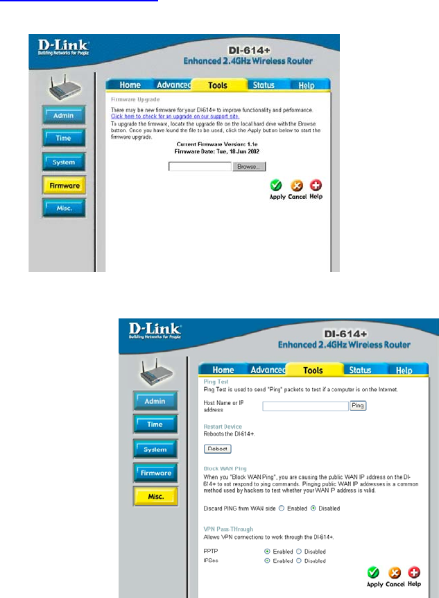 Discard PING from WAN side: By enabling this option, the DI-614+ will not