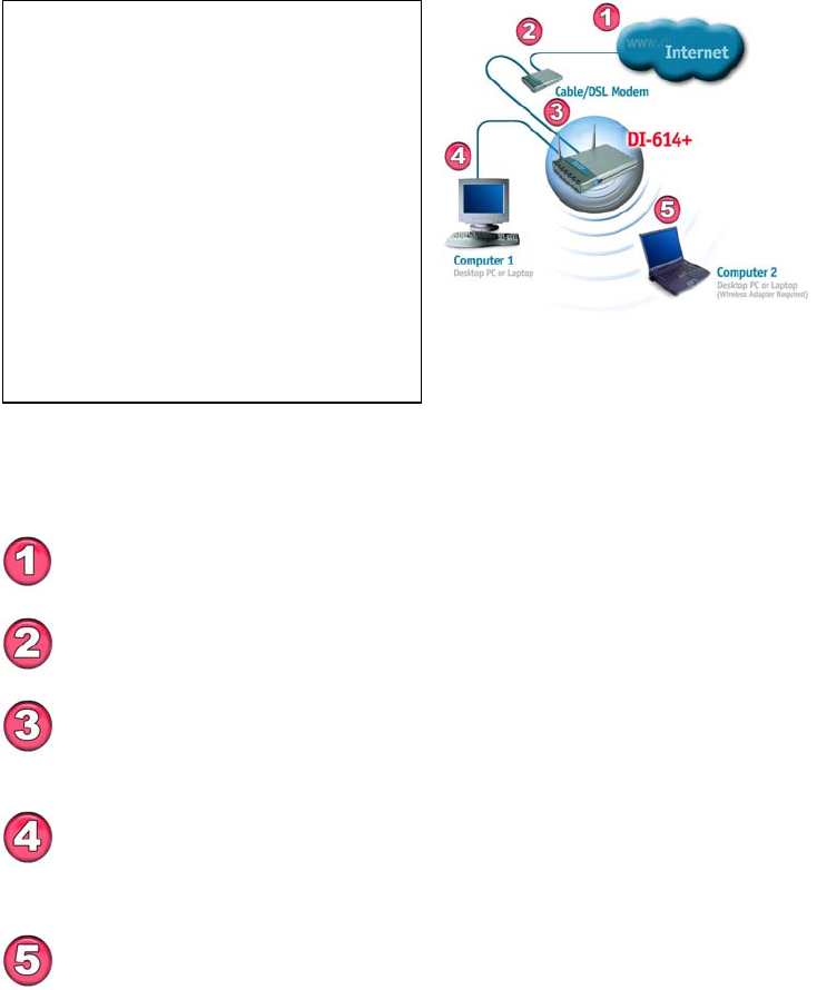 • Connects multiple computers to a Broadband (Cable or DSL) modem