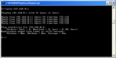 Go to Start>Run>Type Command>Type ping 192.168.0.1.