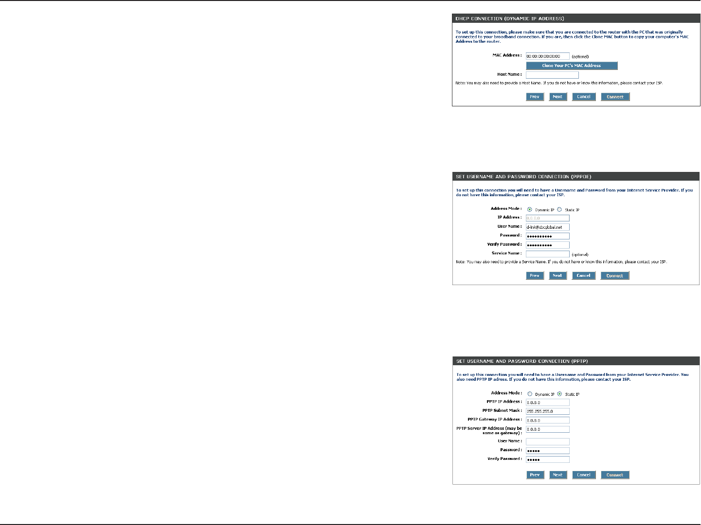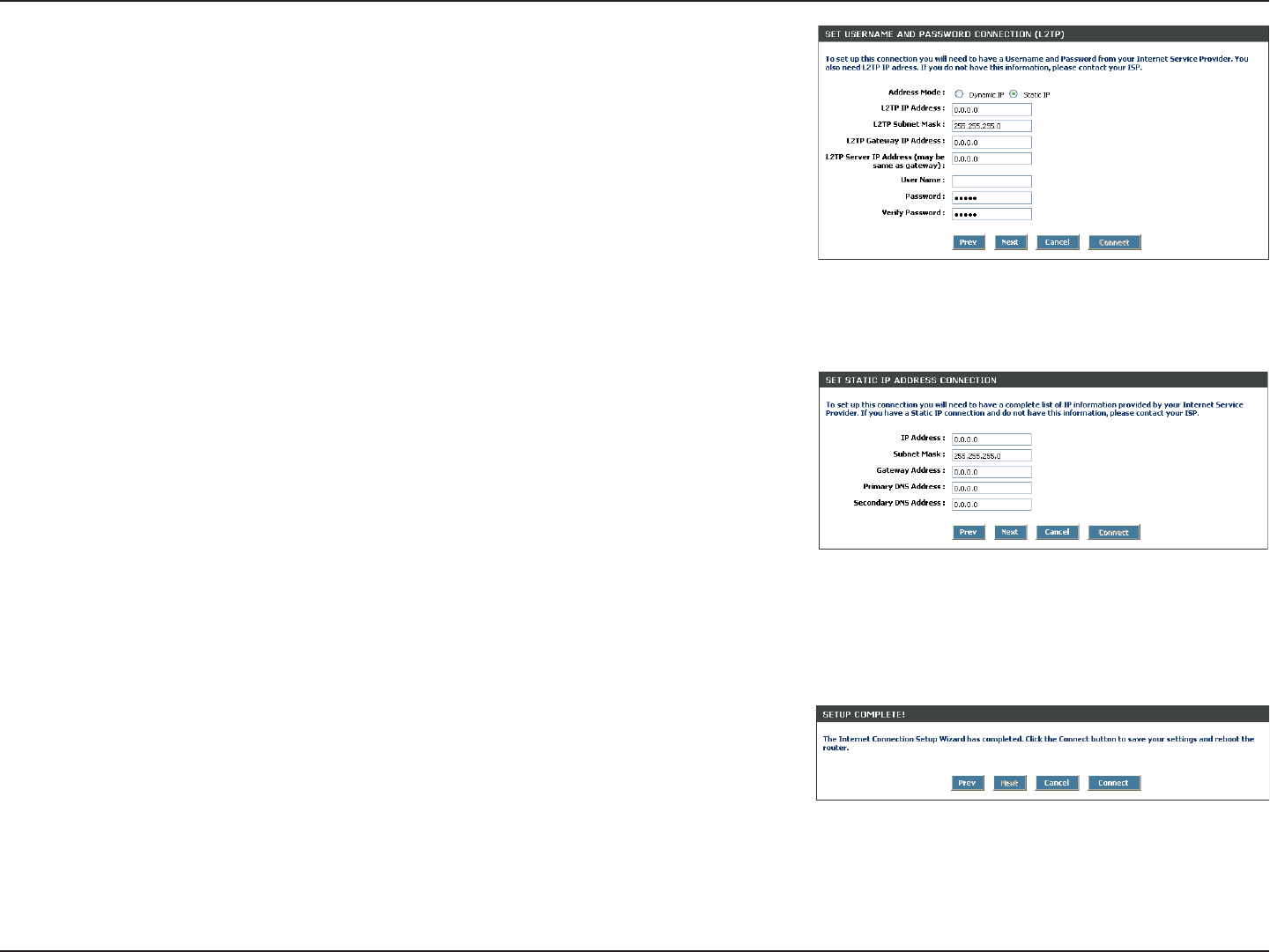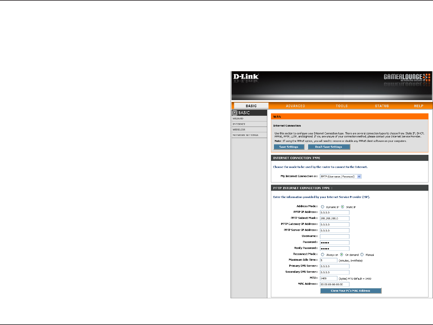 Select Static IP Address if all the Internet port’s IP information is provided to you by your ISP. You will need to enter in the IP address,