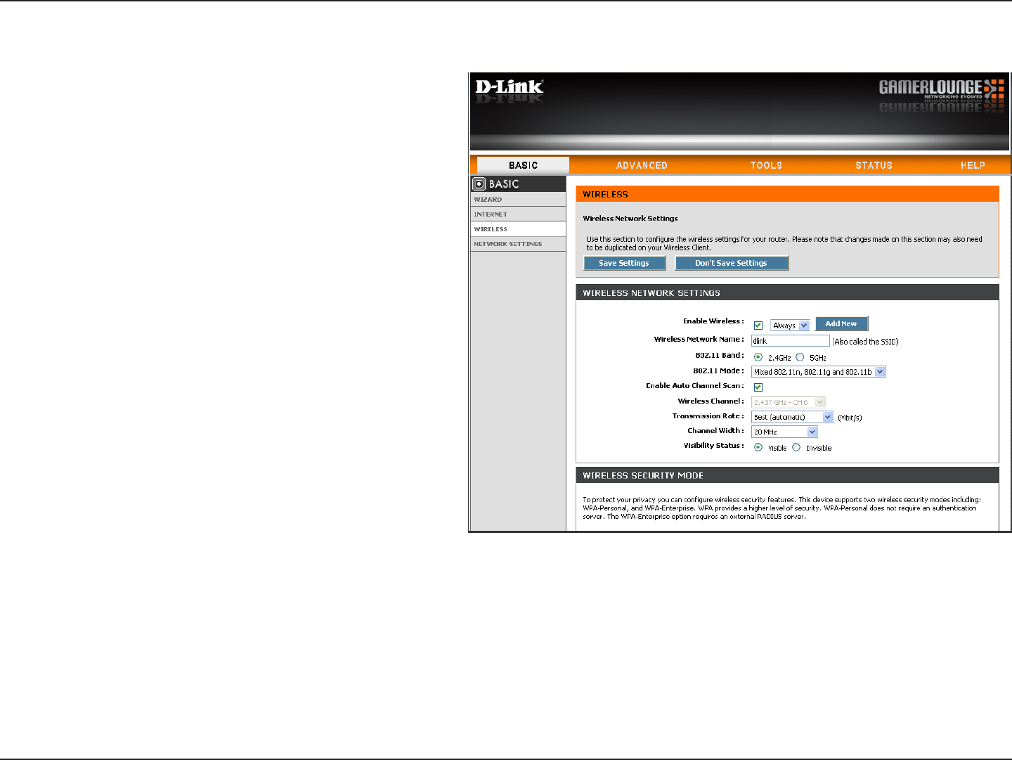 Mixed 802.11n, 802.11b, and 802.11g - Select if you are using a mix of 802.11n, 11g, and 11b wireless clients.