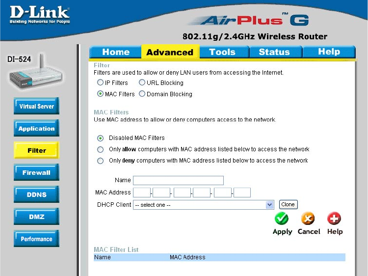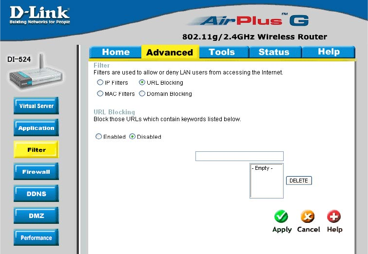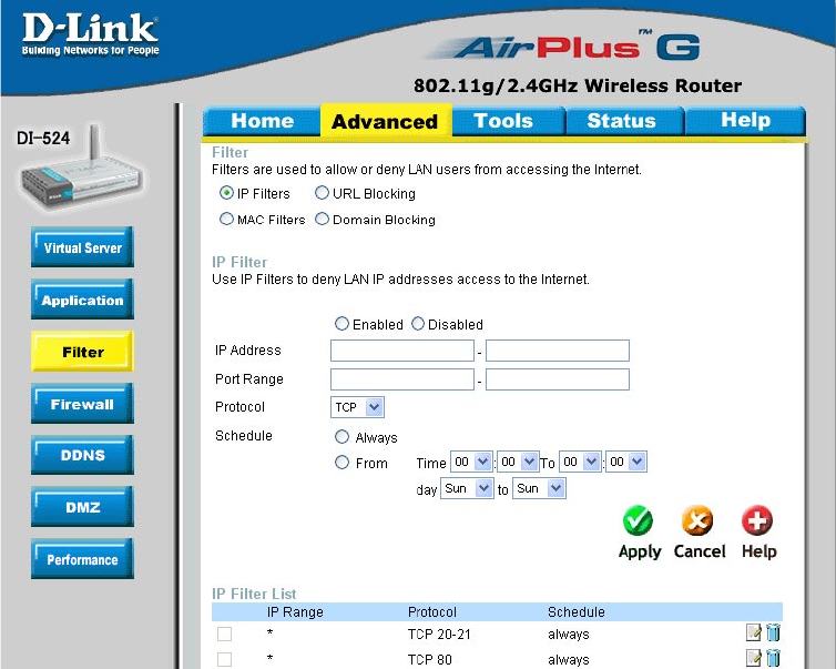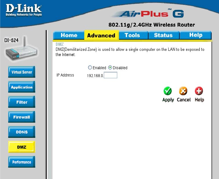 The D-Link AirPlus G DI-524 High-Speed Wireless Router is an 802.11g high-