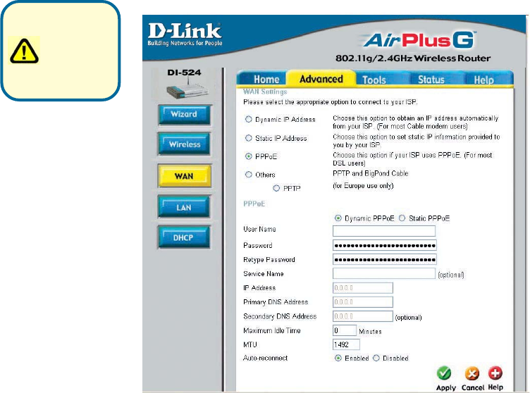 than ever before. Utilizing the Pre Shared Key mode of WPA, the DI-524 will obtain a