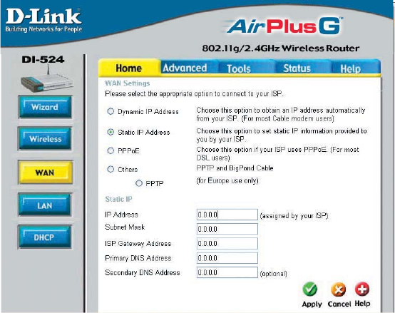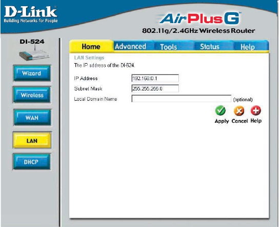 Subnet Mask: LAN/Private Subnet Mask of the DI-524