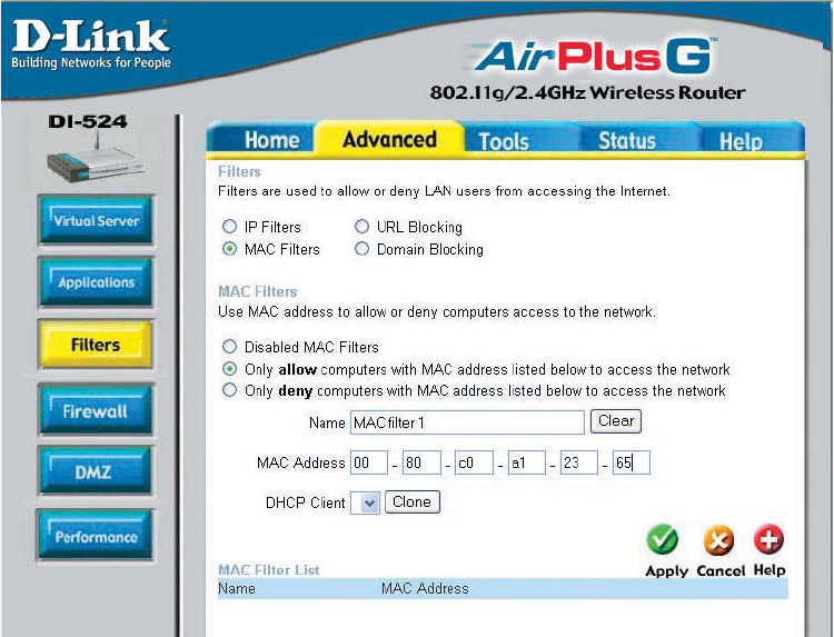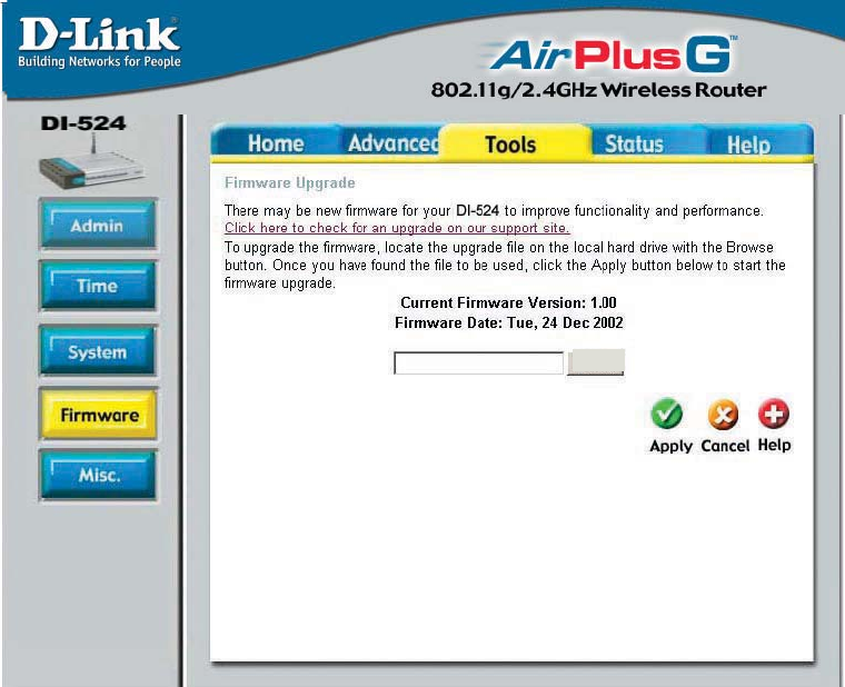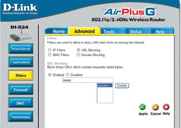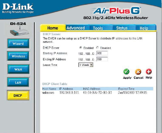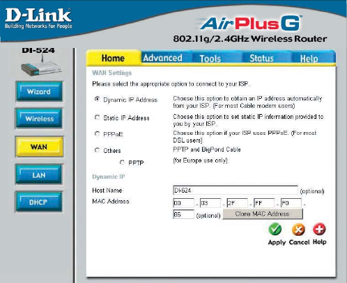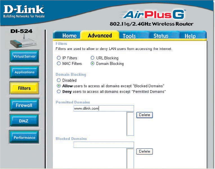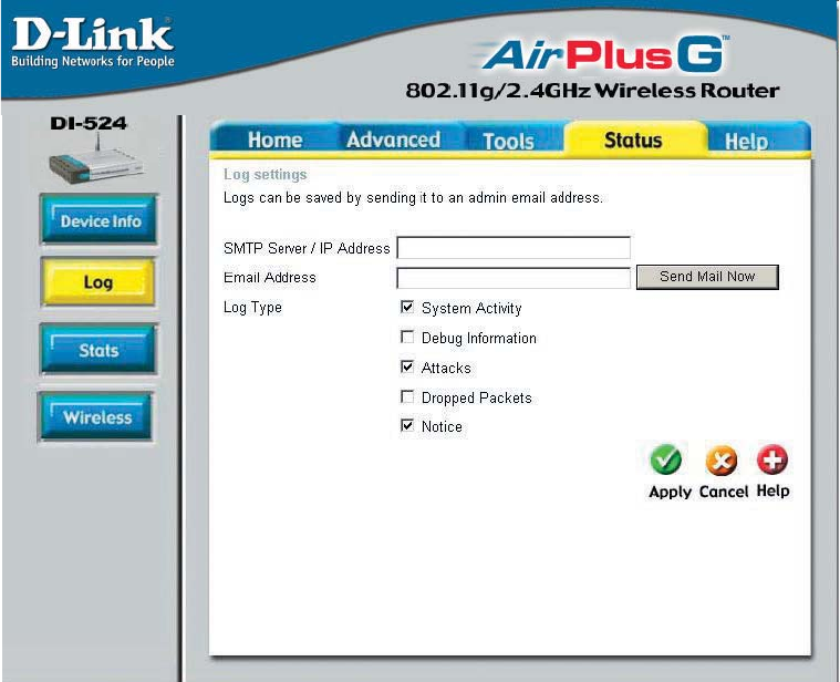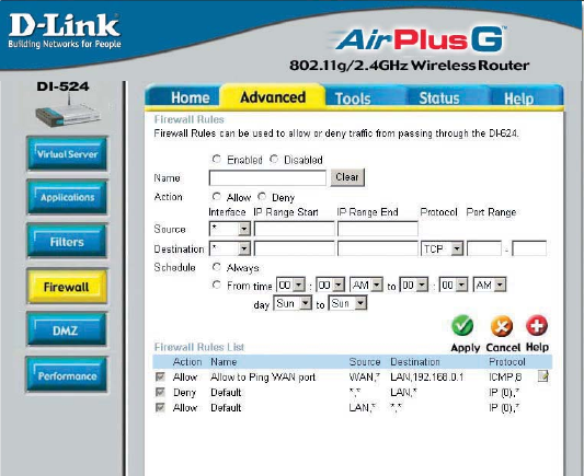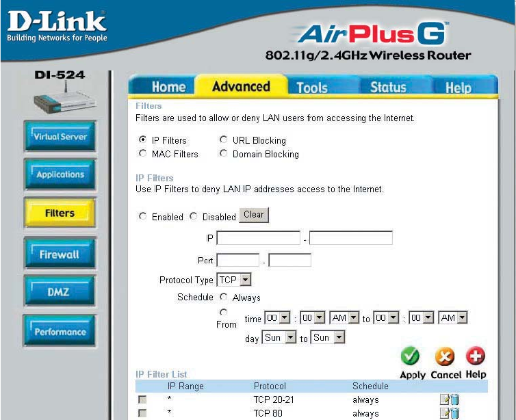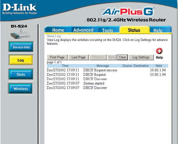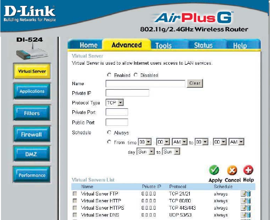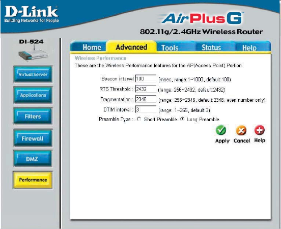 The D-Link AirPlus G DI-524 802.11g/2.4 Ghz Wireless Router is an 802.11g high-