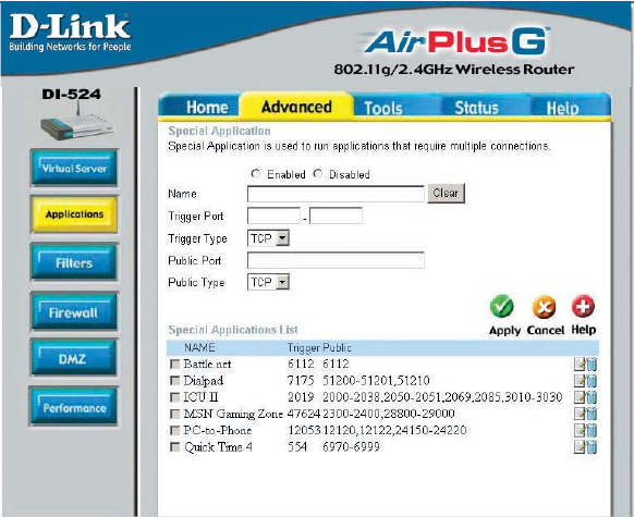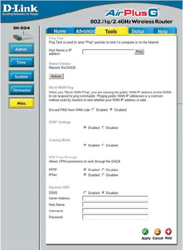 The DI-524 supports VPN (Virtual Private Network) pass-through