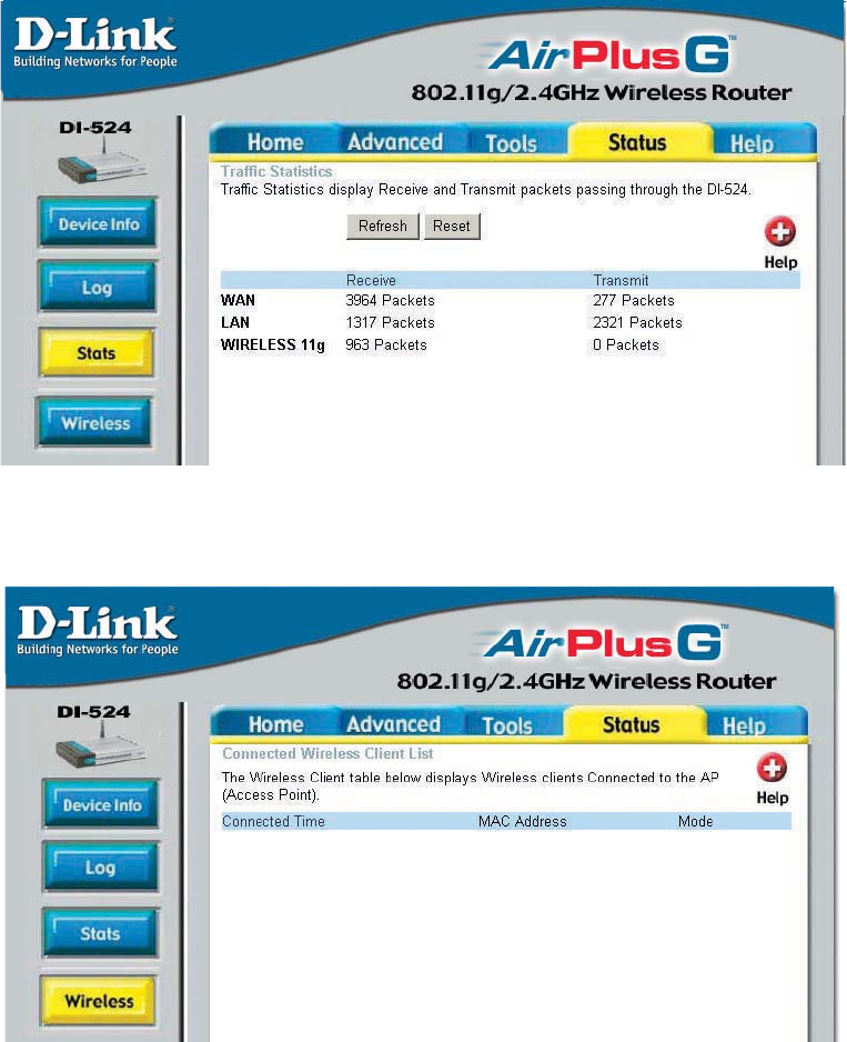 ets that pass through the DI-524 on both the WAN and the LAN ports. The traffic counter