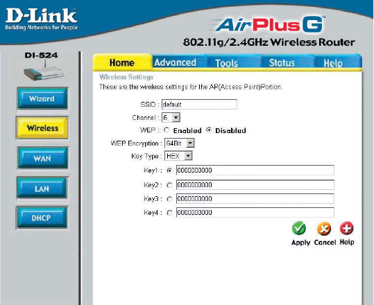 manually input a new WEP key frequently to ensure security, with the DI-524, you will