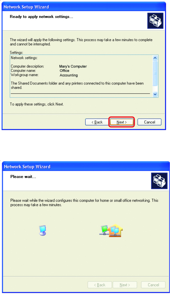 Please wait while the Network Setup Wizard configures the computer.