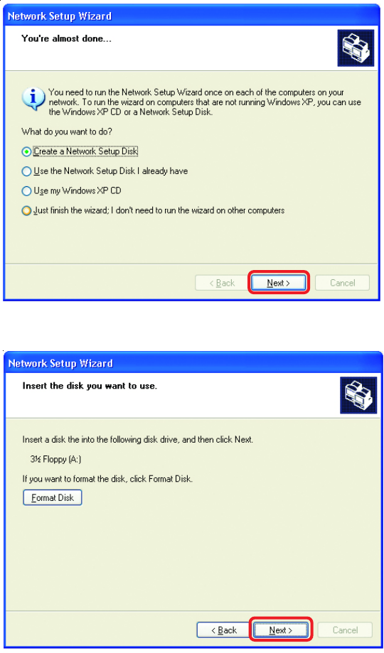 the Network Setup Wizard you will use the Network Setup Disk to run the Network