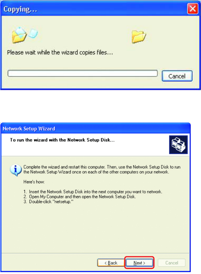 Please wait while the Network Setup Wizard copies the files.